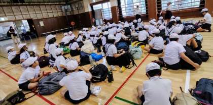 手作りのピザをいただいた後は、着替えて帰る支度をしています。