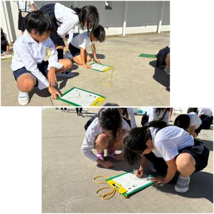 生魂っ子372 かげ と太陽 お天気の良い日をねらって、屋上で観察記録を付けました。