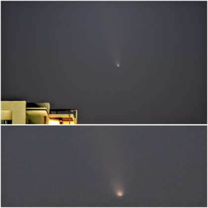 写真は、10月中旬から夕空に見えるようになった紫金山・アトラス彗星を昨日撮影したものです。街明かりのない空の暗い場所では、彗星の尾がもっと長く見えるそうです。