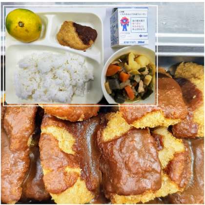 今日の給食では、みそカツに八丁みそを使ったみそだれをかけています。