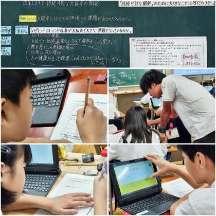 教材4時間目の今日は、「大阪市にはどんな環境への課題があるのだろうか」をミッションに考えました。