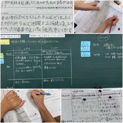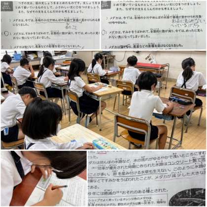 『すみかをうばわれたメダカ』の話を読んで、文章のまとめかたについて考えたり、ゲンゴロウと比較して、絶滅するかもしれない原因について表にまとめたりしました。
