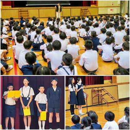 今日の児童朝会では、健康委員会から清潔調べの表彰がありました。