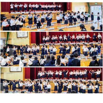 1年生は、「ボサボサノバノバ」を歌い、「ドレミファだいじょーぶ」をけんばんハーモニカで演奏しました。