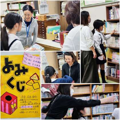 読書週間の取り組みで、昼休みに図書館ボランティア「ひまわり」さんによる「よみくじ」がスタートしています。
