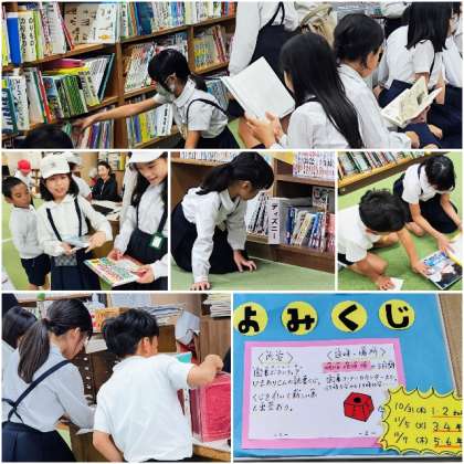 今日は、中学年の日。児童はよみくじに書かれた、ひまわりさんおすすめの本をさがして、読んだり、借りたりしていました。楽しい企画をありがとうございました。