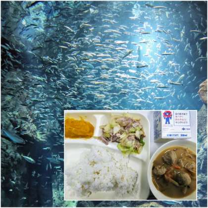 今日の給食は、いわしだんごと大根、ごぼう、にんじん、みつば、などが入った汁物です。いわしだんごは、骨や歯を丈夫にするカルシウムが含まれています。
