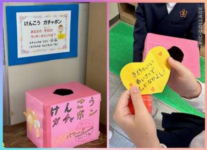 昨日私たちが作った「けんこうガチャポン」で休み時間に遊んでくれる子がたくさんいてうれしかったです。