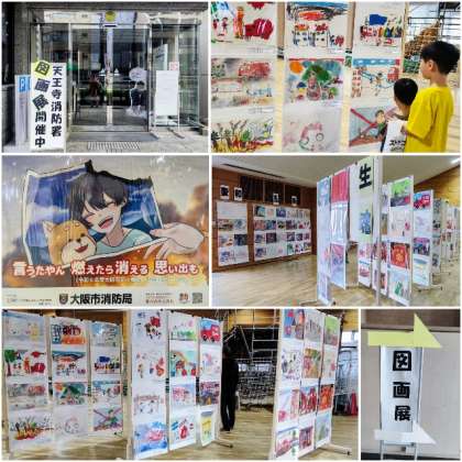 防火・防災意識の高揚を図るために、天王寺消防署では「秋の火災予防運動」の一環として防火・防災図画展が開催され、本校の児童の作品も展示されました。
