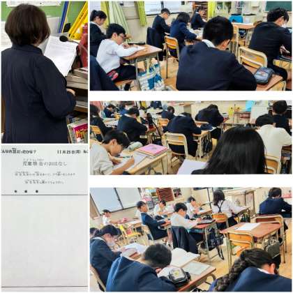 今日は、「自分の限界を少し超えてみる」の講話を行い、ワークを記入しました。教室を覗いてみると、どのクラスも静かに一生懸命にワークに取り掛かっていました。今回の分析結果については、また後日ご紹介します。