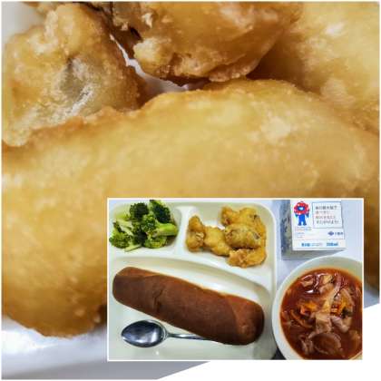 「フリッター」とは、小麦粉や泡立てた卵白などで作った衣をつけて、油で揚げたものを言いますが、給食の「白身魚フリッター」の衣に卵を使っていません。