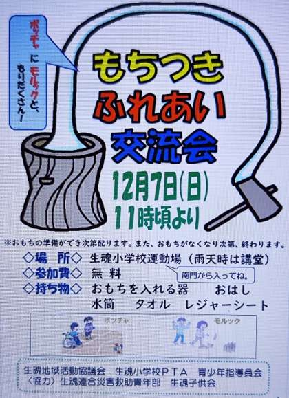 生魂っ子は、SDGsを勉強しています。ごみ削減の視点からも持ち物を確認の上、おもちを入れる器(お弁当箱など)やお箸などを忘れないようにしましょう。