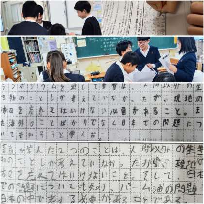 教材6時間目の今日は、「パーム油の生産現場で起こっている問題を解決するために、消費者として何ができるのだろうか。」をミッションに考えました。