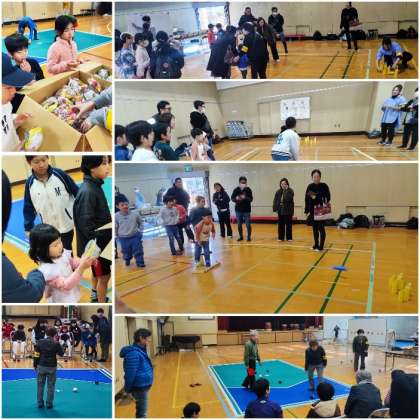 講堂では体験コーナーとして、「モルック」と「ボッチャ」が開催されました。