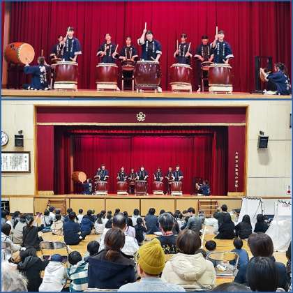 児童は迫力満点の演奏に聞きほれるとともに、演奏しているお兄さんお姉さんをじっと憧れのまなざしで見つめていました。