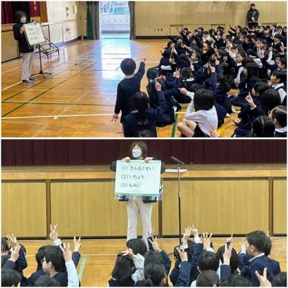 「季節が変わると、暑さ寒さだけでなく、木や虫などの生き物の様子、天気の様子、そして私たちの服装や暮らし方も変わります。みなさんには、そんな季節の変化を感じて、その美しさや不思議さを味わえる人であってほしいと思います。2学期もあと少しです。病気に負けずに元気に過ごしましょう。」と話しました。