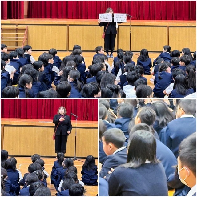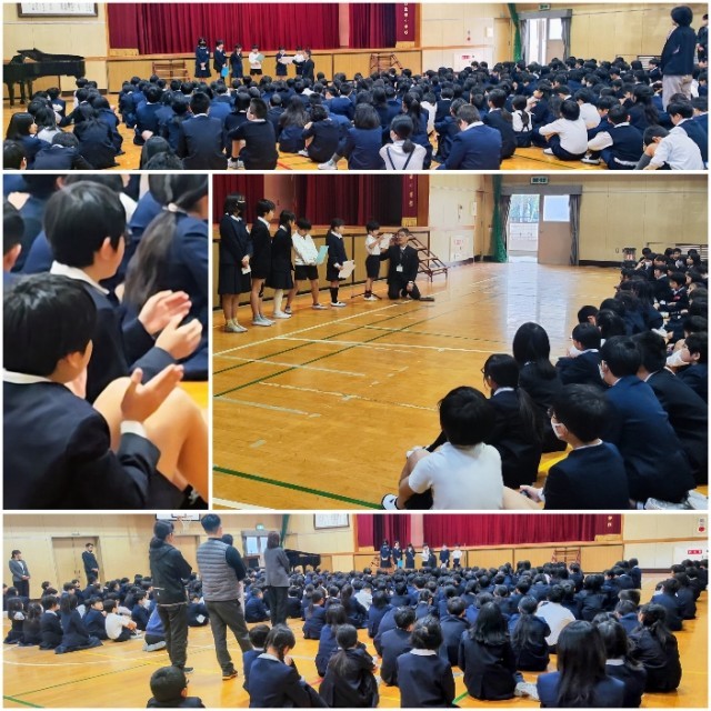 1学期・2学期に挙げていた週目標を振り返りながら、そのほとんどが、3学期にはできていて当たり前であることを全校で再確認し、2学期の児童朝会で話をした、少しの努力でも続けることが自分の成長に大きくつながる、ということや、今大阪市内で生魂小学校がとても注目されていることを伝え、3学期は、もう1ランク自分をアップさせてみましょうと促しました。