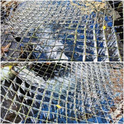 けれども今朝、網にかかった循環装置の水しぶきが、とてもきれいに凍っているのを、管理作業員さんが教えてくれました。朝日に照らされて、とてもきれいな自然の造形でした。