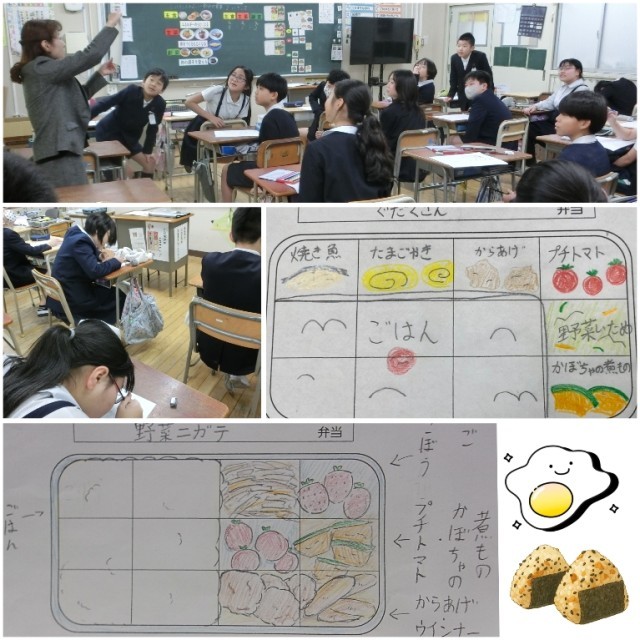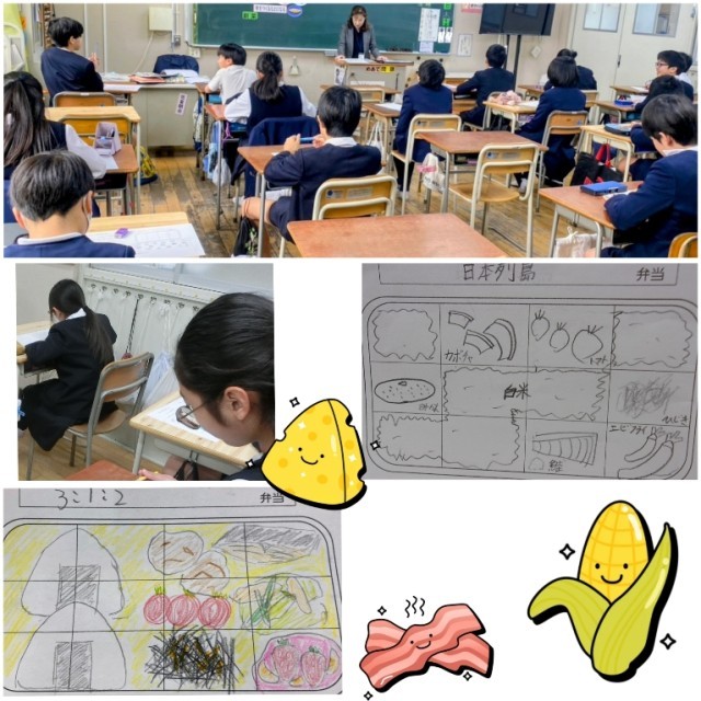 授業の中では、「自分が食べたいお弁当」と「主食や主菜、副菜などの栄養を考えたバランスの良いお弁当」のメニューを考えました。