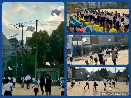 1学期のプール交流につづき、幼小交流の取り組みで「たこあげ」をしました。そら組・ほし組・はな組、10分ずつの交流でしたが、天気もよく走りづめの5年生は、くたくたになっていました。しかし、やさしく声をかけたり、トラブルに素早く対応したりと園児が楽しく上手にたこあげできるようにしっかりサポートしていました。運動場でさよならのあいさつをした後に、自発的に玄関に集まり見送る姿がほほえましかったです。