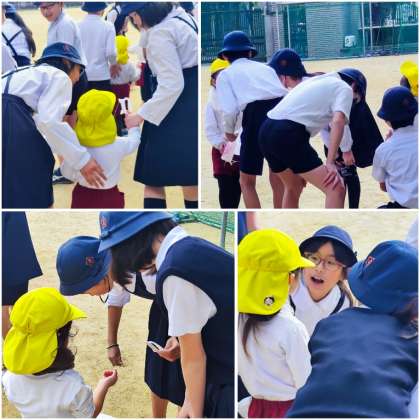 昨日の生魂幼稚園の園児と本校の5年生の交流は、互いの信頼と優しさいっぱいの時間でした。