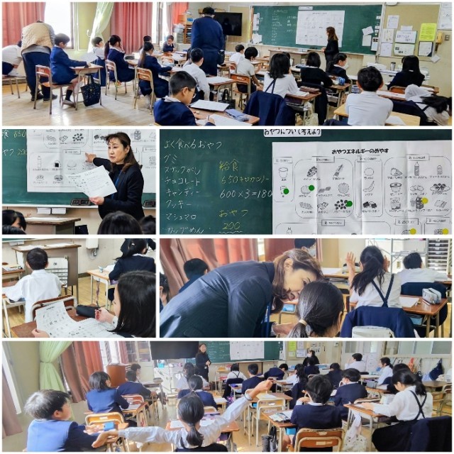 味原小学校の栄養教諭の先生が来校くださり、「おやつ」をテーマに主におやつのカロリーについてみんなで考えました。