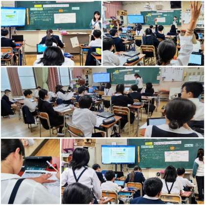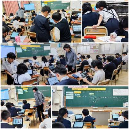 文章を読んで、技術やテクノロジーについてどのようなことが書かれているのかをまとめ、互いの考えを確認しながら交流を深めていました。