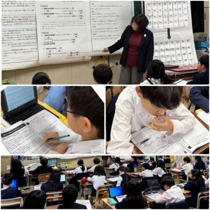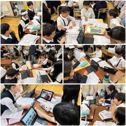 授業の後半は、ジグソー法を使って調べ学習を行い、自分が調べた内容を教え合いました。自分の受け持ったパートを責任をもって調べたり、他のメンバーに説明したりする活動を通じて、自主的に考える力や積極性、協調性が培われることを期待します。