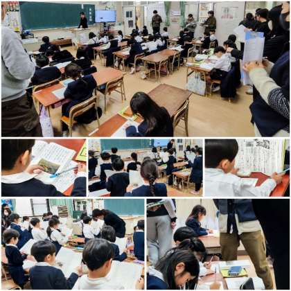 たくさんの先生が見守る中、児童は臆することなく自分の考えを整理し、意欲的に学習に取り組んでいました。