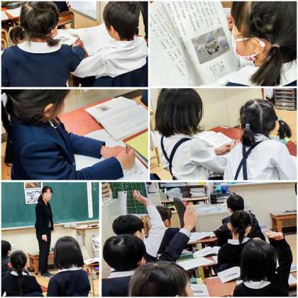 1年1組では、大阪市総合教育センターの山角指導主事にご来校いただき、総合的読解力育成カリキュラムの教材を進めるにあたって、1年生で学ぶべき内容について国語の『子どもをまもるどうぶつたち』の教材を通して研究しました。