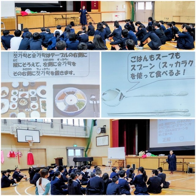 4年生が学んだ食文化や、5年生が学んだハングル(韓国語)についてもあわせて教えていただきました。
