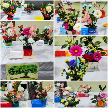 子ども生け花・親子チャレンジ作品が展示されました