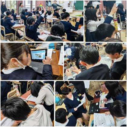 大阪市総合教育センターの山角指導主事も来校くださり、総合的読解力育成カリキュラムの教材について授業を通じて考えていきました。
