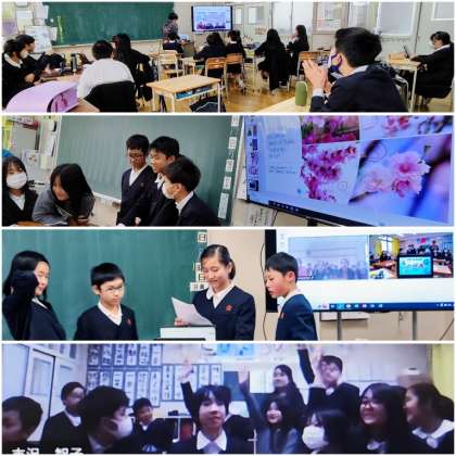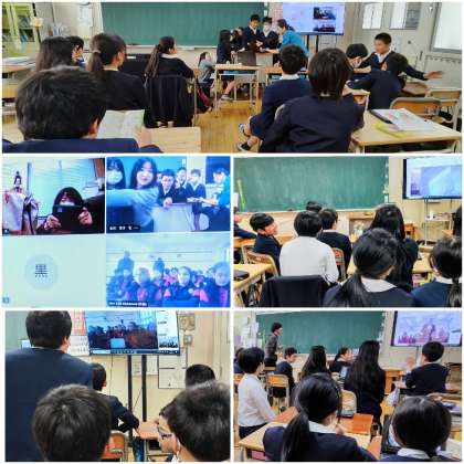時々画面がフリーズしてしまうこともありましたが、お互いの顔が映ると笑顔で手を振り合っていました。互いの国のこと、町のことなど、とても上手にパワーポイントで紹介し合いました。