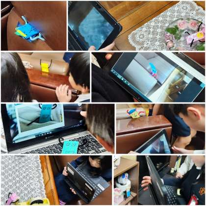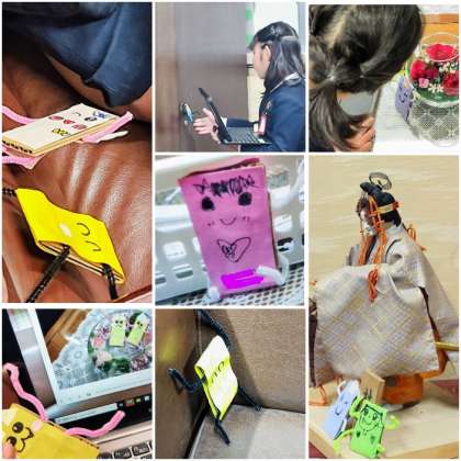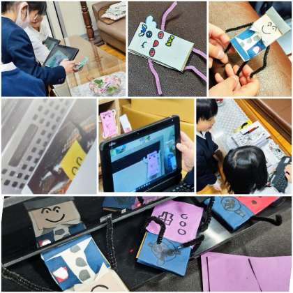 何やら校長室前で子どもたちの話声が聞こえます。ドアを開けてみると、可愛いキャラクターを手に、何やら撮影をしています。
