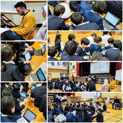 4年生の教材「「大阪に来る外国の方に和食を紹介しよう」の最終授業でした。「外国の方に和食を紹介しよう」をミッションに学年合同で学習しました。