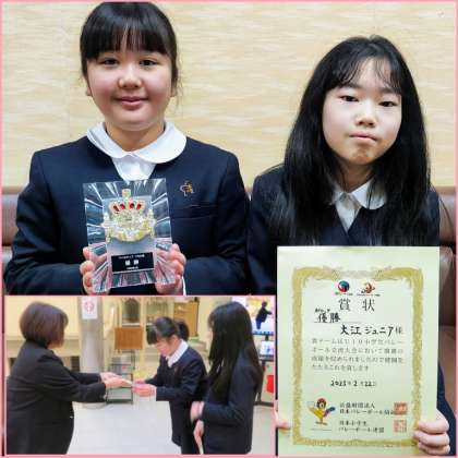 今年度、この間何度かバレーボールチーム「大江ジュニア」で活躍している本校の2名の児童を表彰してきましたが、今回も「U10小学生バレーボール交流会」において優勝しました!