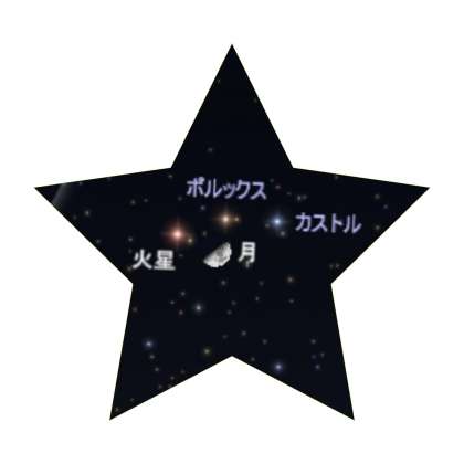ふたご座のポルックス(恒星)やカストル(恒星)と共に、火星を見つけてみましょう!