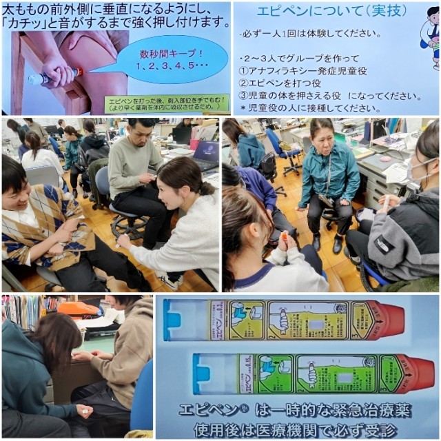 研修では、アレルギーやアドレナリン自己注射(エピペン®)についての理解を深め、緊急時の対応などについて確認しました。