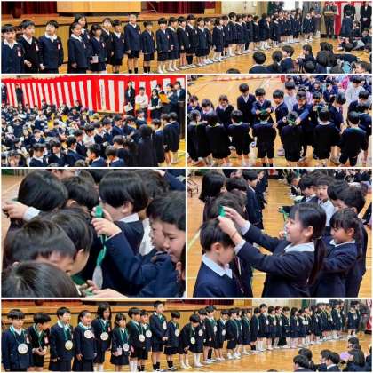 ☆ 3年生からメダルをかけてもらい、ニッコニコ笑顔の1年生