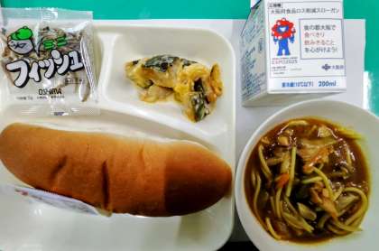 学校給食の「かぼちゃのマリネ焼き」は、かぼちゃに野菜ブイヨンとノンエッグドレッシングを合わせて下味を付け、焼き物機で焼いた料理です。給食では、新登場のメニューです。