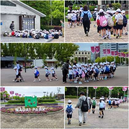 長居植物園に着きました! 公園は広くてとてもきれいです。 みんなとても元気です。