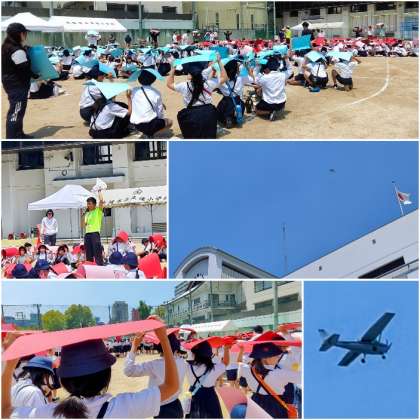🛩 雲一つない真っ青な空の下、創立150周年記念誌用の航空写真を撮影しました!