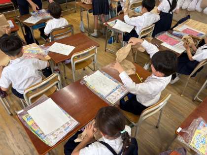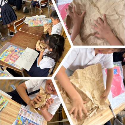 この後は、中に新聞紙などの紙を詰め込んで作品にしていきます。