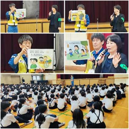 天王寺警察署と天王寺区役所の方をお招きし、防犯についてのお話を開きました。自分を守る「5つの約束」について、改めて教えてもらいました。