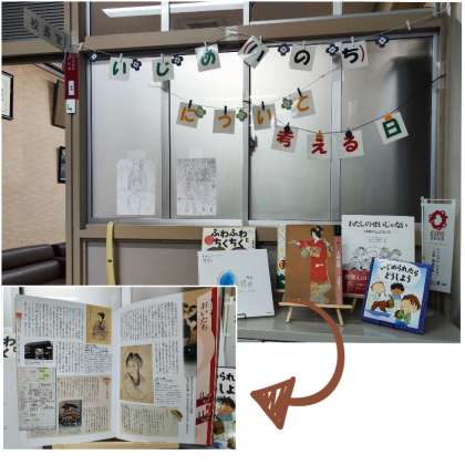 校長室前に並べている本と一緒に上村 松園さんのことを書いた本を置いています。興味のある人は、自由に読んでもいいですよ。