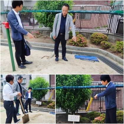 昨日に続いて、本日は卒業生と一緒にタイムカプセルを埋めた場所を確認しました。