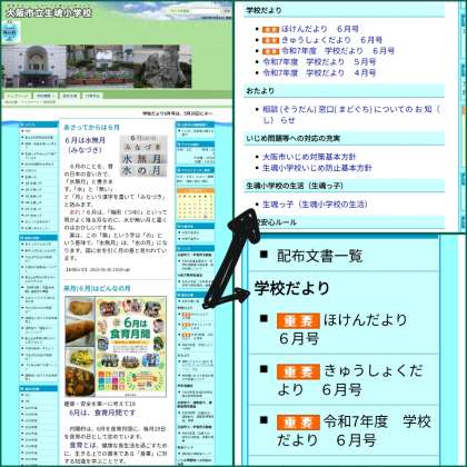 「学校だより」の6月号を、ホームページの右側の「配布文書」欄に載せています。