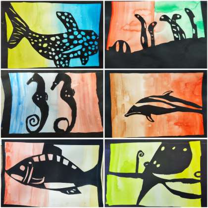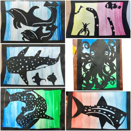切り絵はカッターを用いることで、用具の安全な使い方を学びました。