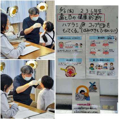 今日は、2・3・6年生がブクブクうがいをして、きれいな状態で歯科検診を受けました。1・4・5年生は、14日に行います。